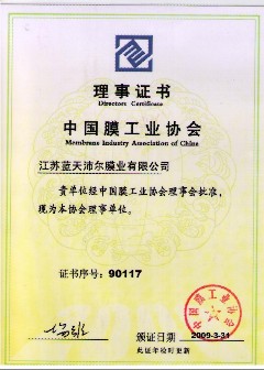 2009年3月22日,在广西南宁举办了“中国膜工业协会第三届理事会第八次会议”,会议提请并批准了江苏蓝天沛尔膜业有限公司成为中国膜工业协会理事的议案。